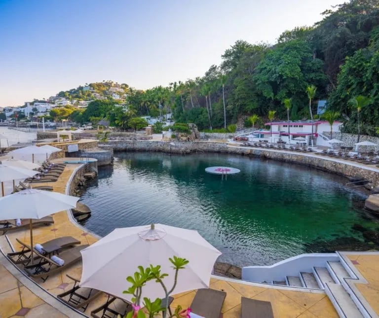 Este hotel de lujo ocupa un terreno de 16 hectáreas con vistas a la preciosa bahía de Acapulco.